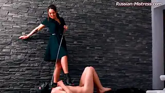 Порно видео Писающие, Госпожа - Русская госпожа разрешает голому рабу целовать ягодицы, а потом укладывает мужика на пол и становится на ноги, принимаясь писать стоя и стараясь попасть в рот