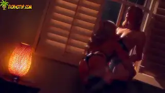 27K Порно видео Кунилингус, Секс в чулках - Ночной кунилингус двух сексапильных красавиц в чулках на диване