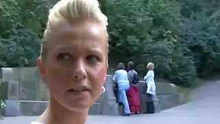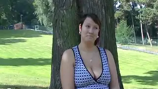 Czech Girls - В поисках секса за деньги пикапер с камерой ходит по парку, вскоре сочная блондинка соглашается на минет и еблю, мужик сливает сперму на лицо проказницы