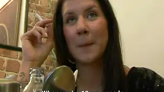 Retro Models - Молодая брюнетка курит сигарету перед камерой, когда знакомится с пикапером, телочка сосет большой член мужчины и ебется с чуваком, который кончает на щеку