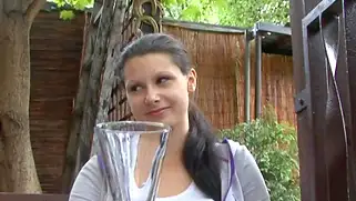 Телочка в белой майке дала пикаперу в жопу и получила сперму в лицо