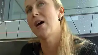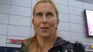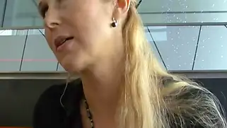 Czech Girls - Пикапер снял в гипермаркете блондинку и завел телку в подсобку, там баба принялась сосать большой хуй самца, а когда парень кончил на лицо, сучка облизала член