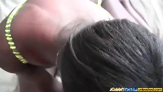 На отпуске жопастая краля скачет пиздой на члене негра, наслаждаясь видом