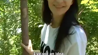 Czech Girls - Симпатичная темноволосая телочка стала объектом ебли пикапера, мужику показали сиськи в лесополосе, сделали парню минет и подставили пизденку в позе раком