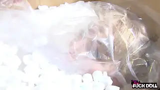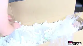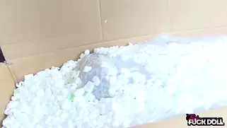 Порно видео Фетиш, Трах - Мужик получил посылку, большой ящик с сухим льдом, где лежала красивая сисястая баба, на самом деле это оказалась телка андроид, которую можно трахать