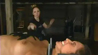 - Госпожа связала смуглую красотку веревками, заткнула рот девушки кляпом и использовала портативную секс машину, чтобы рабыня смогла получить яркий оргазм