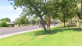 Публичное обнажение красивой молодой блондинки в общественных местах