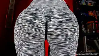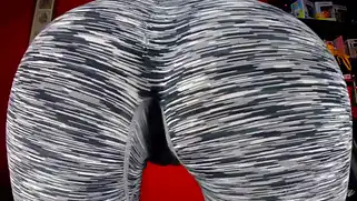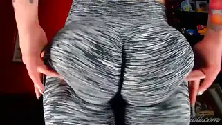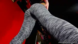 Порно видео Приват, - Сисястая красотка с накачанной крепкой жопой позирует в серых леггинсах, которые обтянули ягодицы шлюшки, телочка начинает снимать штанишки чтобы показать попку