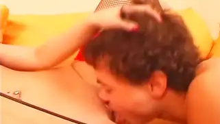 У кучерявого друга русский секс с тяночкой — ебля на диване с лизанием писи и хуя