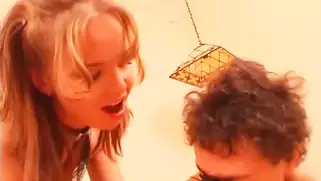 Страпон на голове парня доводит до оргазма рыжую русскую блядь