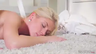 Блондинку в чулках раком трахнули в киску и кончили на попу