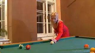 Порно видео Приват, секс видео ххх - Статная белокурая телка поставила секс машину на бильярдный стол и села на вибрирующую насадку, красотка нагибалась и распрямлялась, стараясь кончить быстро