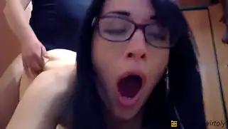 Навалил на клык студентке в очках и стал трахать брюнетку