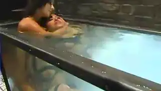 Ебля палкой и страпон на голове перед купанием госпожи с рабыней