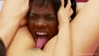 Порно видео Кунилингус, Молодая - Молодая азиатка борется со стройной негритянкой и побеждает, телочка большим красным страпоном ебет соперницу в рот, а потом трахает пизденку бляди по-всякому