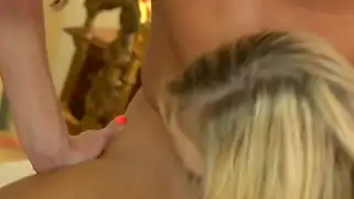 Блондинка вместе с подружкой скачет на члене зрелого парня