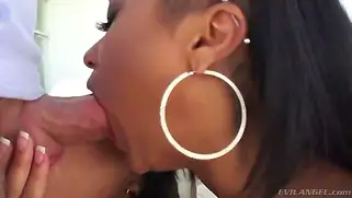 Две черные шлюшки будут глубоко заглатывать большой белый член