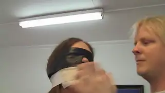 Порно видео БДСМ / BDSM, бдсм бондаж - Пожилой начальник любит устраивать испытания для новых сотрудниц, сегодня симпатичной сучке завязали лицо, а потом связали руки и ноги веревками, положив на стол