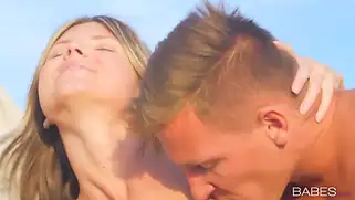 Молодая русская шлюшка занимается сексом на скалах с парнем
