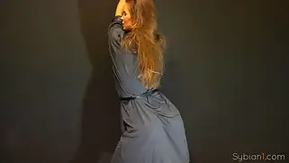 Девушка в элегантном платье кончает от мастурбации киски