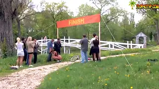Порно велопробег заканчивается страстной групповушкой на финише
