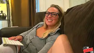Цыпочка в очках и гольфах будет стонать когда её ебут раком