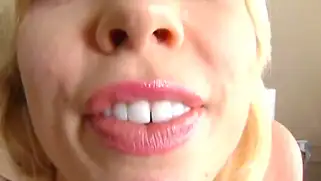 Слюнявый отсос зрелой блондинки завершается камшотом на лицо