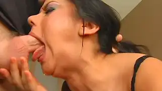 Home Porn - Зрелая брюнетка с большим хуем во рту делает чуваку глубокий минет, засасывая балду парня в гостеприимное горло и добиваясь финального мужского семяизвержения