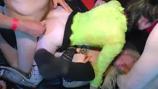 Гангбанг сессия нескольких блядей с камшотами и выстрелами спермой