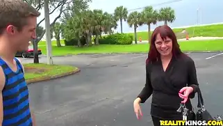 Пикапер снял рыжую зрелую мильфу и кончил на живот бабы