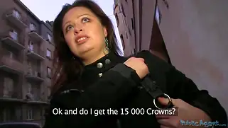 Пикапер кончил между грудей сочной брюнетки во время траха