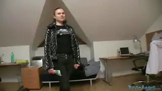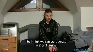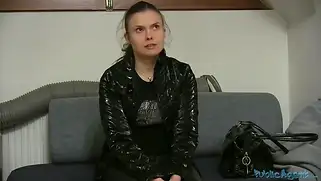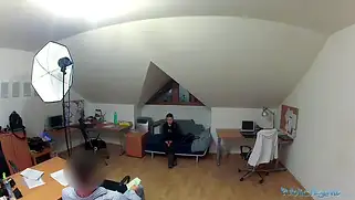 Жопастая брюнетка на кастинге лижет яйца, сосет хуй и ебется