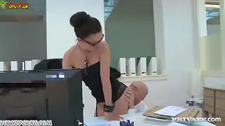 Ебливую секретутку четко трахнули в очко на диване в офисе