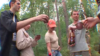 Порно видео Групповуха, Две дырки - Четыре русских парня и две девушки собрались на пикник, где после распития спиртных напитков приступили к ебле у костра, сучек поимели во все дырки и обкончали
