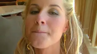 Блондинке с сочной пиздой мужик кончил в рот и продолжил вафлить