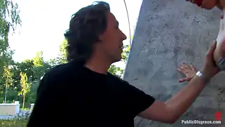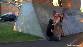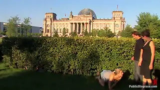 Порно видео Минет, - Чувак привел в большой парк связанную красотку, а рядом шла его подружка, сучка в веревках начала сосать член самца, а потом была трахнута у дворца публично