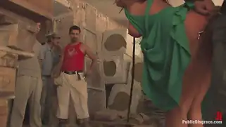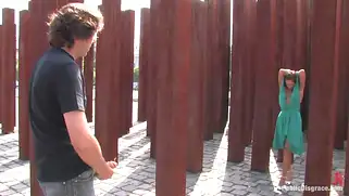 Красотку в зеленом платье ебут в рот и трахают на мостовой