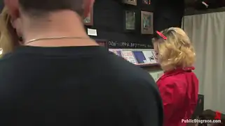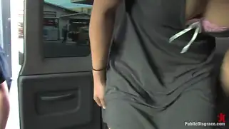 Смазливую красотку водят по магазинам и трахают сучку публично