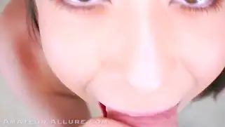 Классный секс от первого лица и минет с секси брюнеткой в синем