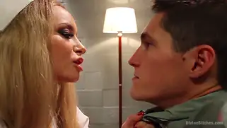 Медичка дрочит член парня по-всякому и трахает рукой в анус
