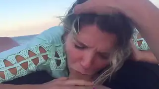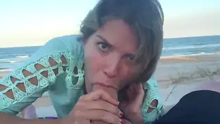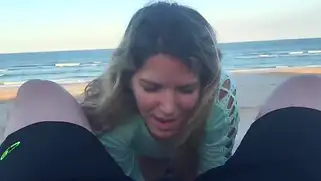 Порно видео Минет, Трах - Ранним утром парень привел подружку на публичный песчаный пляж и стал ебать сучку на свежем воздухе, минет на берегу моря завершился камшотом большого члена
