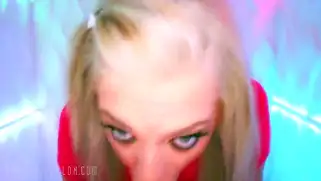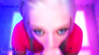 Тиффани сосет длинный член парня от первого лица и он кончает