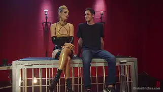 Порно видео Анал, Анал оргазм - Госпожа наряжает послушного раба в латексный костюм перед тем как выебать в жопу страпоном, а после анального секса надрачивает хуй самца и добивается оргазма