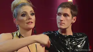 Госпожа нарядила парня в латексный костюм и трахнула в жопу