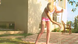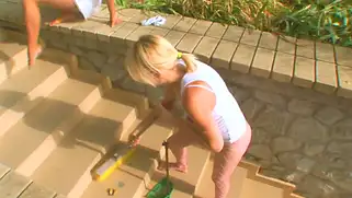 Молодые лесбиянки затеяли субботник и дрочили киски швабрами