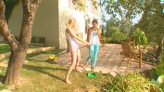 Порно видео Мастурбация, Лесбиянки - Когда телочек выводят на субботник, им нельзя давать в руки продолговатые предметы, молодые сучки разделись на свежем воздухе и стали дрочить киски швабрами