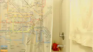 Home Girls - Пухлая блондинка с большими сиськами установила в ванную комнату веб камеру и решила помыться перед зрителями, позируя из-за занавески абсолютно голой