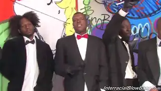 Лысый негр с дружками смачно ебет белую горячую милфу, устроившую оргию