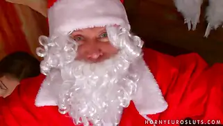 Порно видео Анал, Минет от молодой - Санта исполняет желания симпатичной молодой брюнетки, мужик снимает новогодний костюм, дает девушке сделать минет и трахает красотку во все отверстия до оргазма