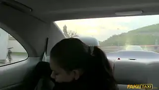 Телочка всю дорогу дрочила член шофера и сосала хуй перед еблей